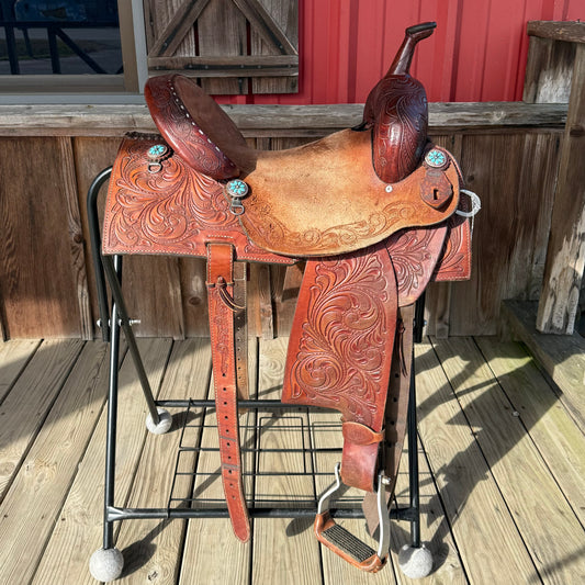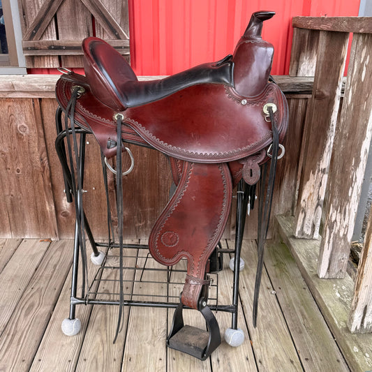 Barrel, Cutting, Trail and Roping types of saddles for different disciplines.