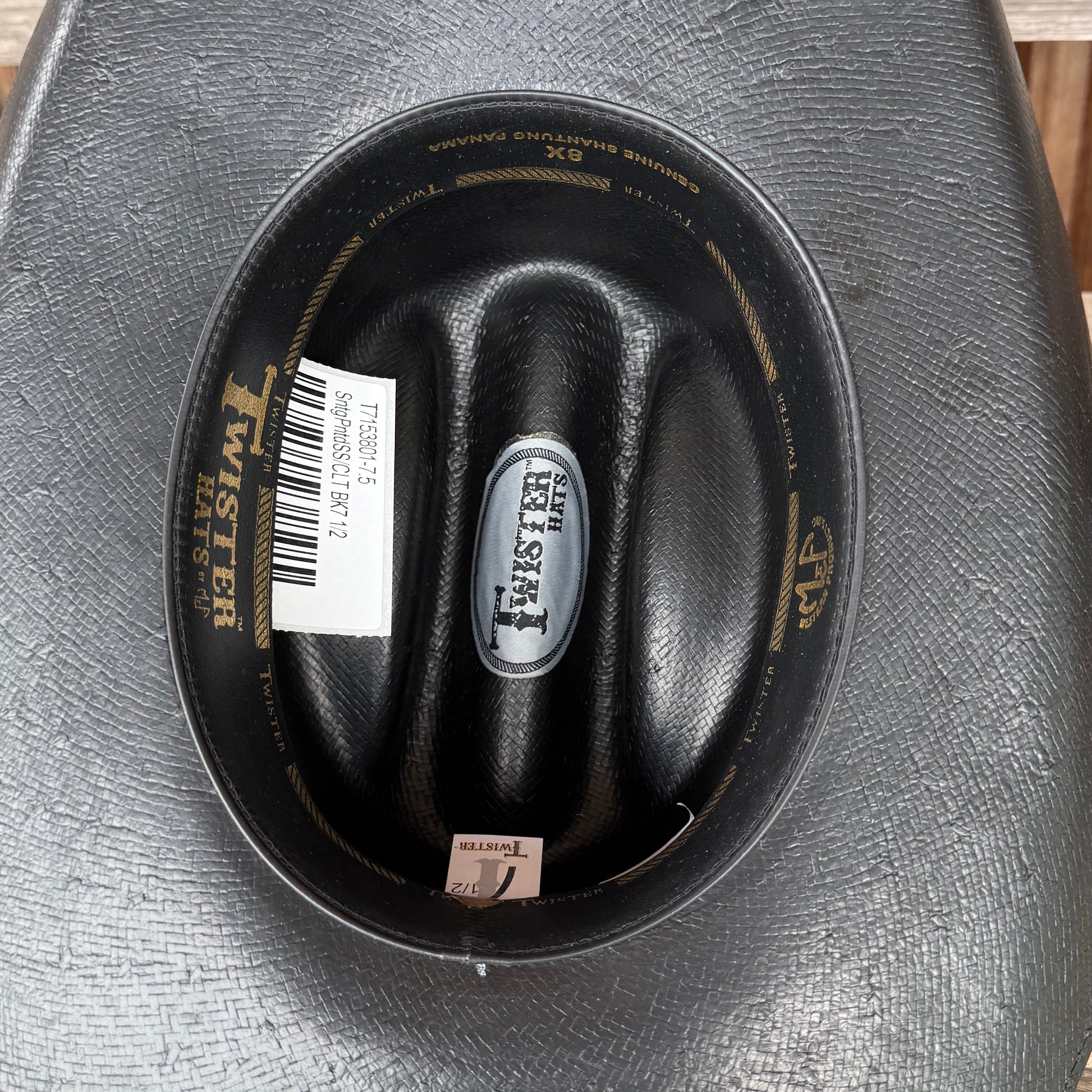 Twister Black 8X Shantung Hat, 2-Cord Black Band with Eyelets, Crown: 4-1/4, Brim: 4