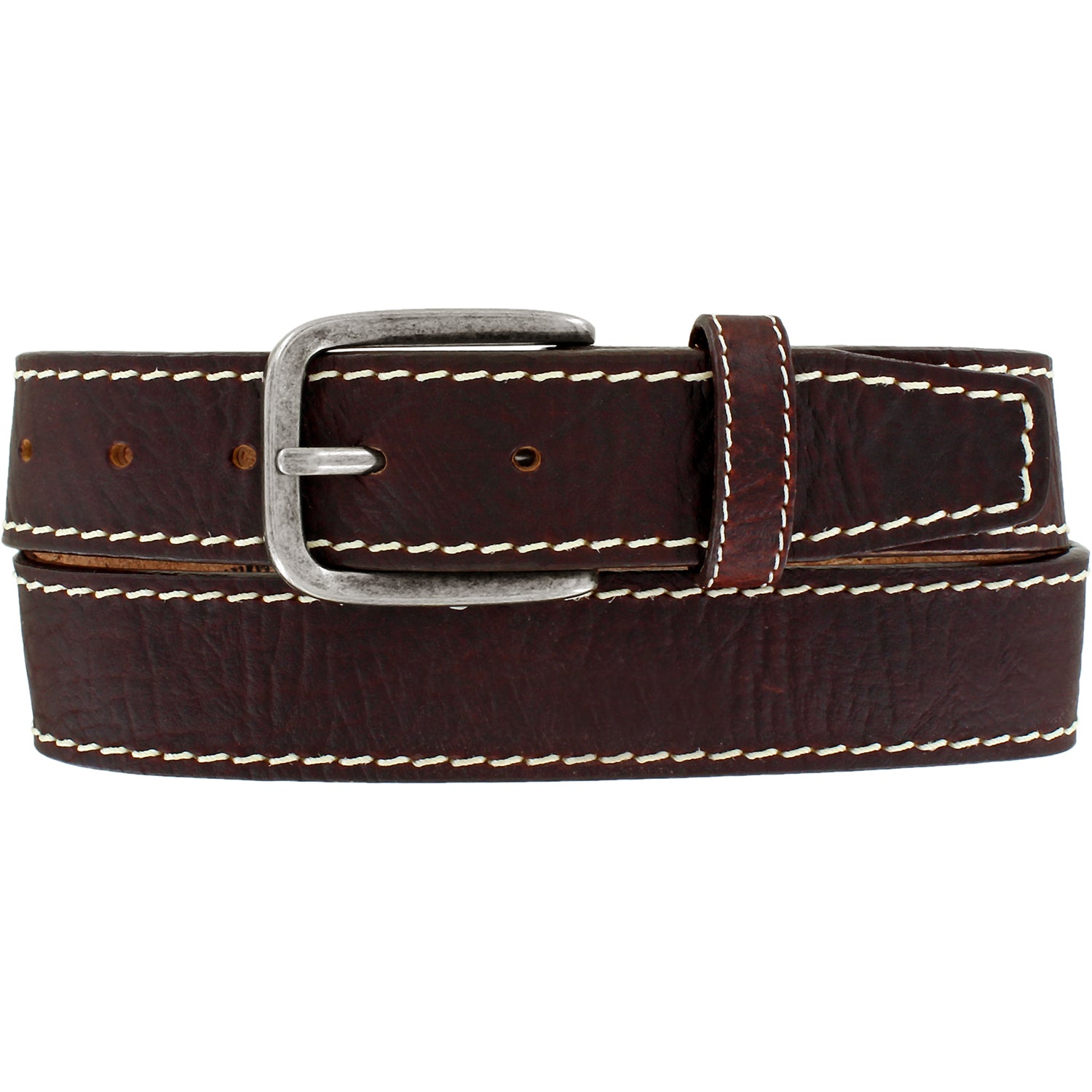 Justin men's belt made of genuine American Bison-America's original leather-and a heavy contrast color stitch, Width: 1 1/2", silver plated hardware, made in USA