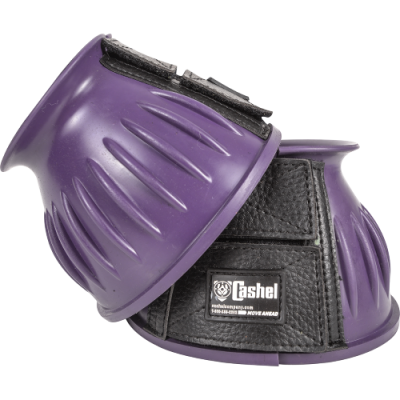 Purple Cashel bell boot provides protection against over reach injury. Will not attract stickers or trap burrs or grass. Provides a 360 degree wrap. Sturdy leather with double hook-and-loop closures for easy application.